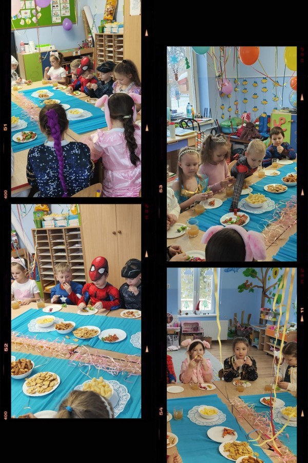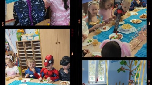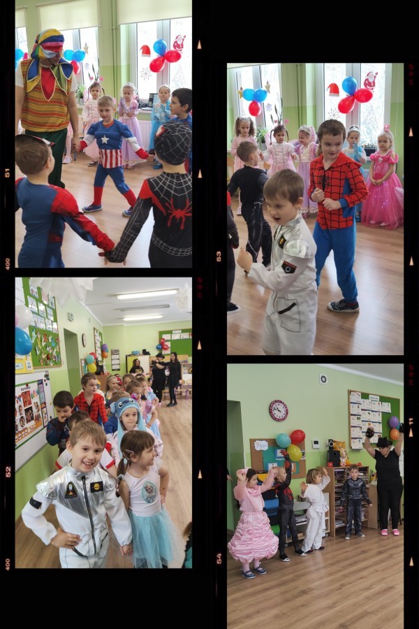 Tego dnia w naszym przedszkolu odbył się bal karnawałowy. Zabawa była świetna. Przedszkolaki przebrane były za księżniczki, superbohaterów i różne kolorowe postacie :) Na sali podczas pląsów robiło się kolorowo, wszyscy bawili się wesoło, a uśmiech nie znikał z twarzy. Po zabawie dzieci zjadły słodki poczęstunek. To był bardzo radosny dzień !