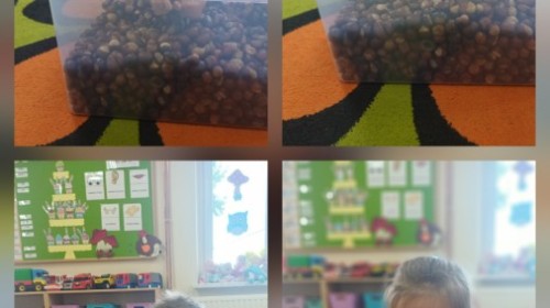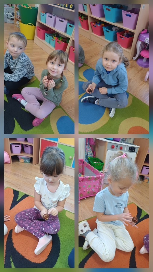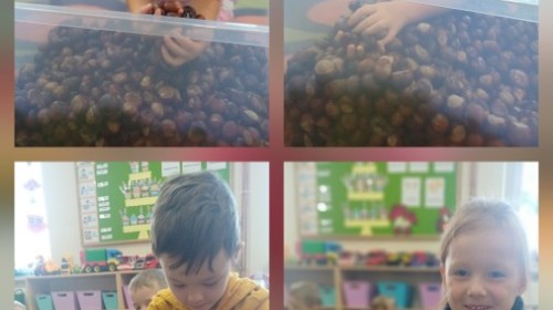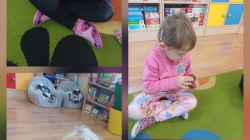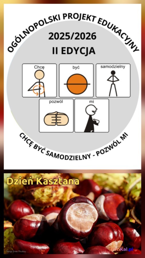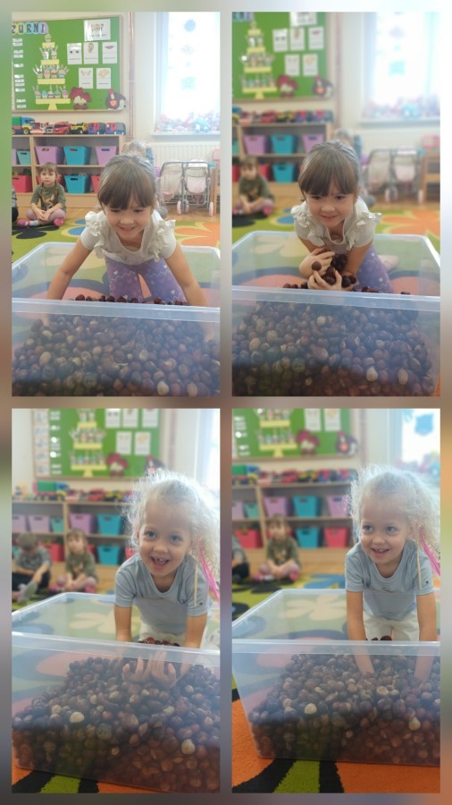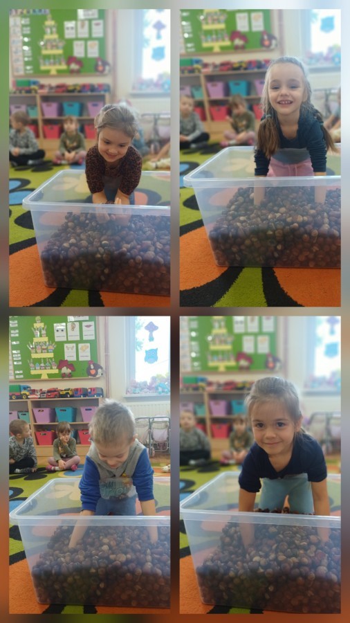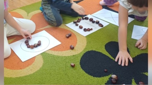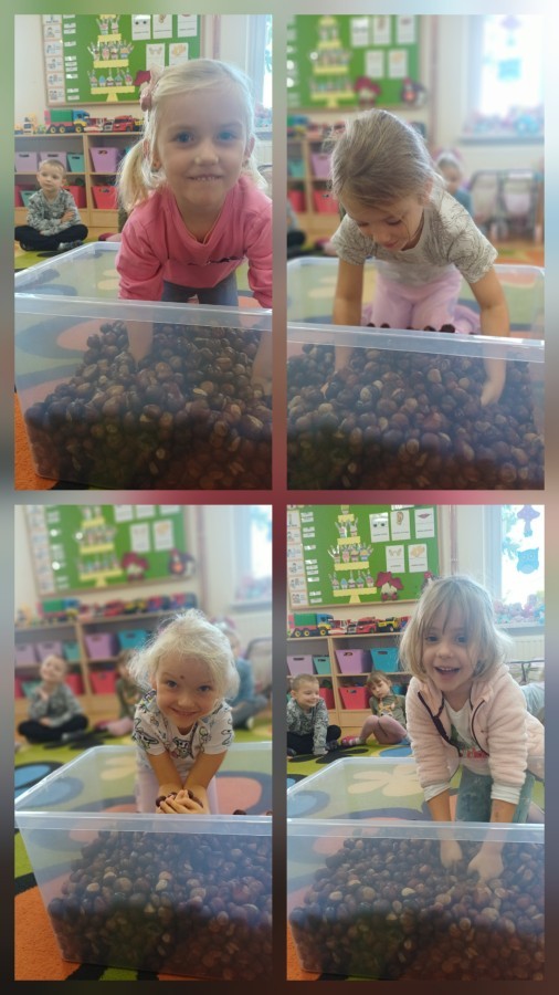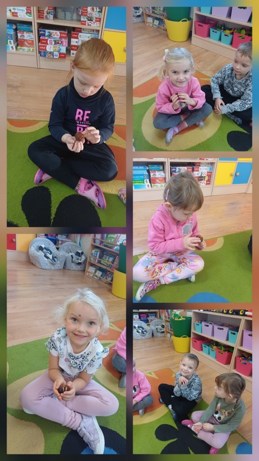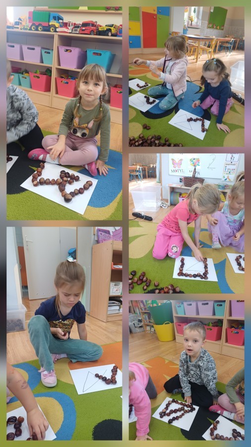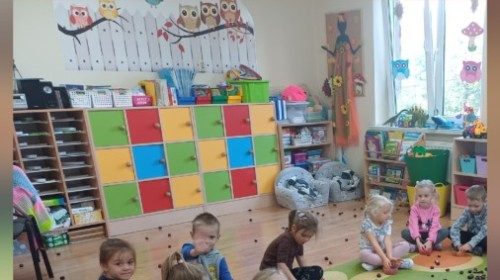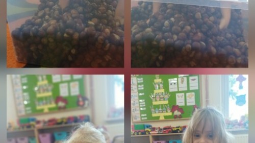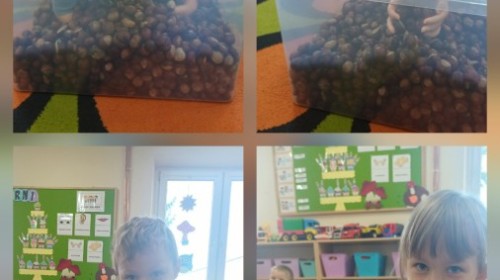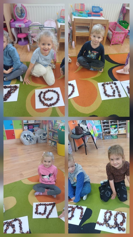 Tego dnia Mądre Sówki realizowały zajęcia z Ogólnopolskiego Projektu Edukacyjnego "Chcę być samodzielny - pozwól mi". Podczas zajęć dzieci bawiły sie kastanami określały jakie są. Jak również wykonywały działania matematyczne, ćwiczyły precyzję podczas układania wzorów z kasztanów. A na koniec zajęć pięknie posprzątały.