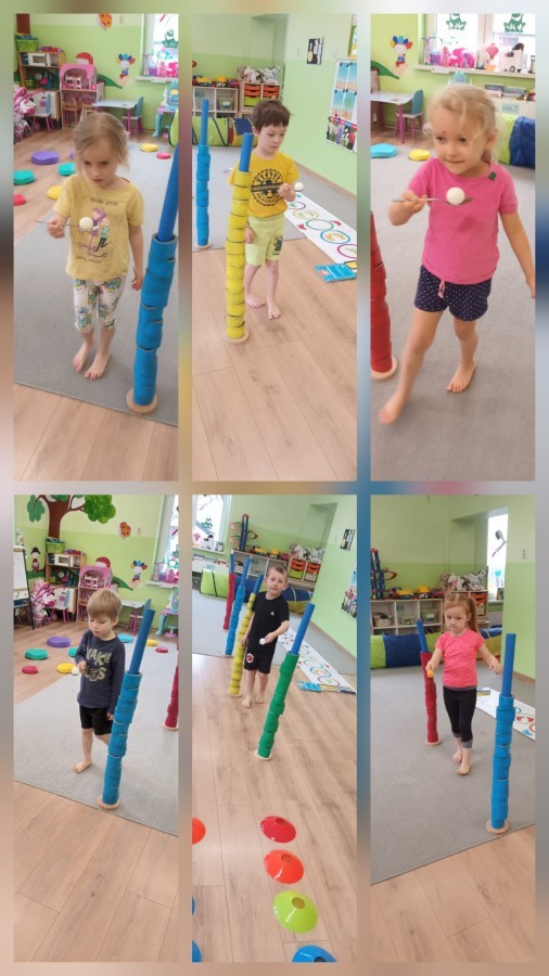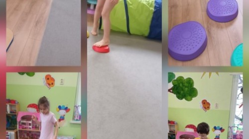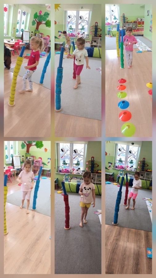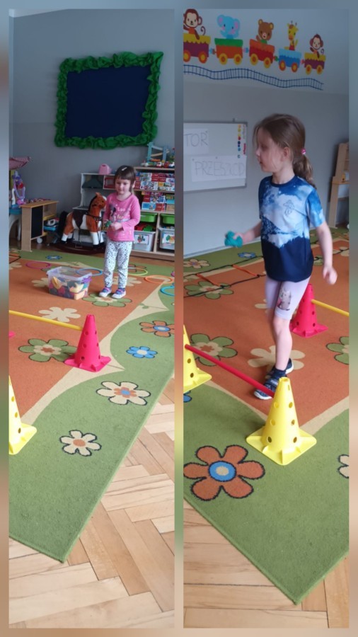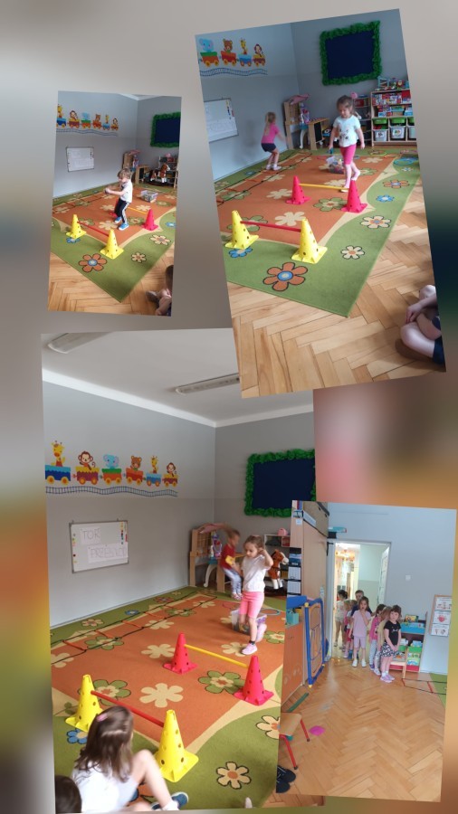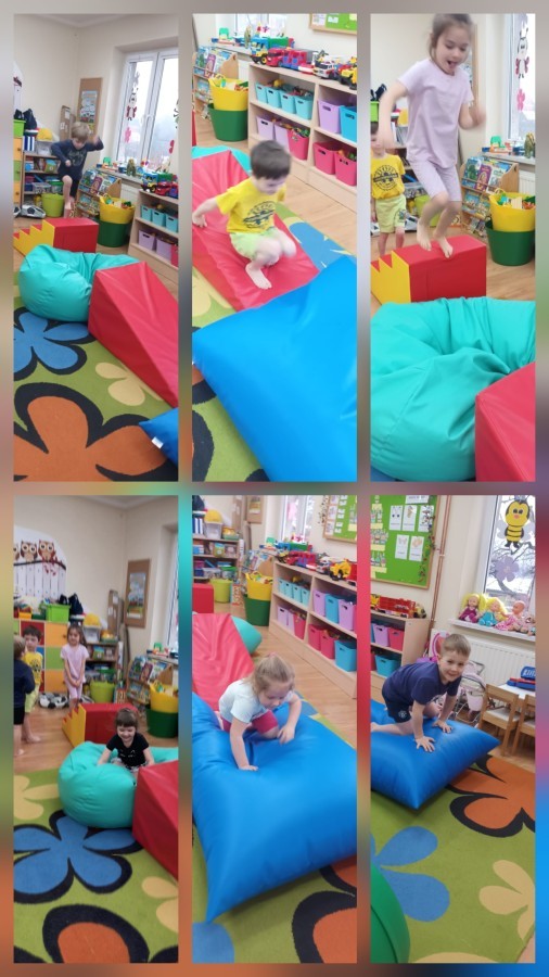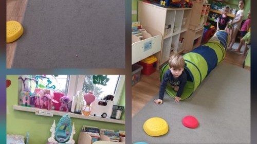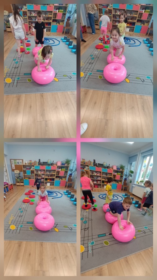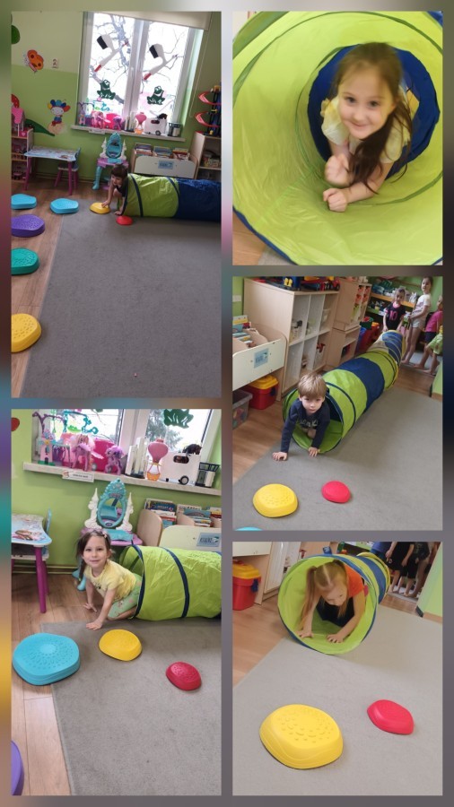 W piątek nasze przedszkole zamieniło się w jeden duży tor przeszkód. Przedszkolaki chodziły po wszystkich salach, gdzie wykonywały rożne ćwiczenia. Pokonywanie toru przeszkód rozwija u dzieci sprawność motoryczną, umiejętności równoważne oraz koordynację ruchową. Zabawy z wykorzystaniem różnorodnych pomocy, np.: beczki sensorycznej, drabinki koordynacyjnej, tuneli czy ścieżki sensorycznej wyzwalają u dzieci aktywność i motywację do pokonywania własnych ograniczeń. To był bardzo aktywny dzień.