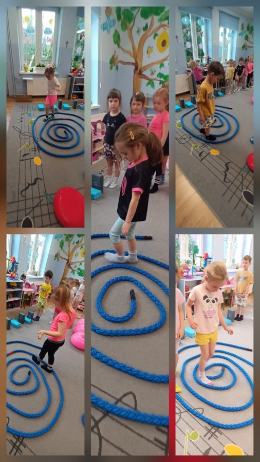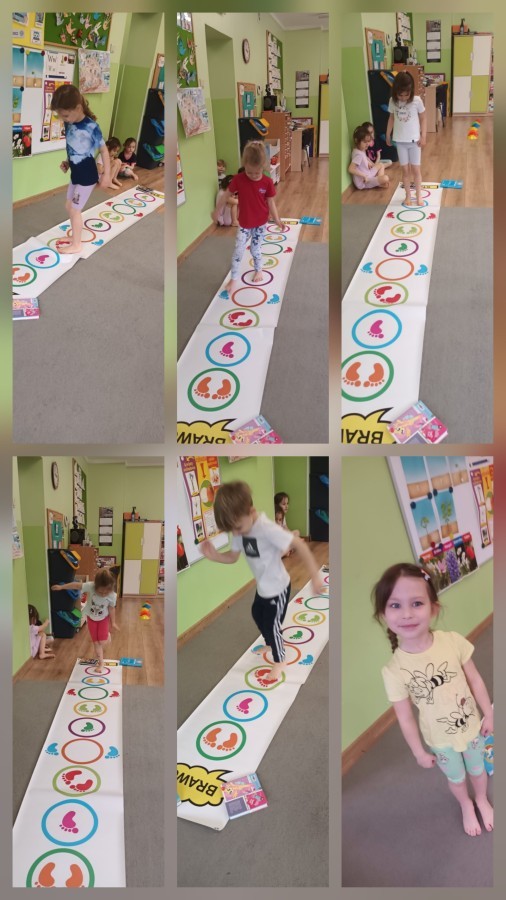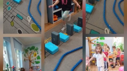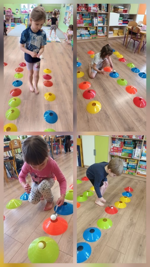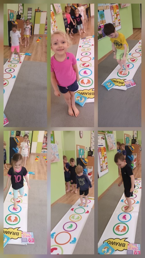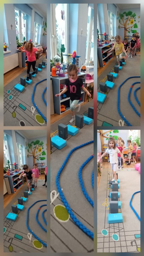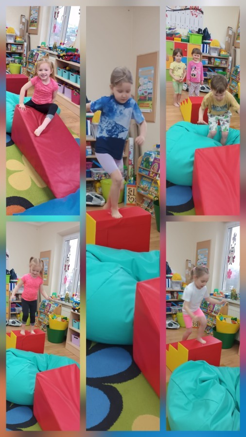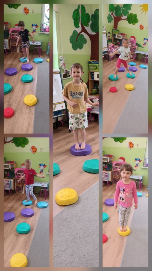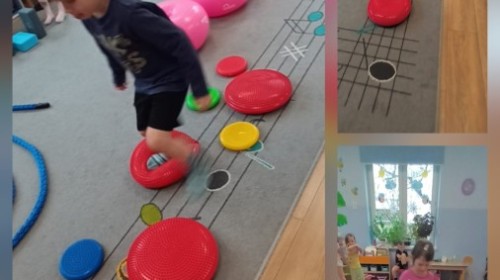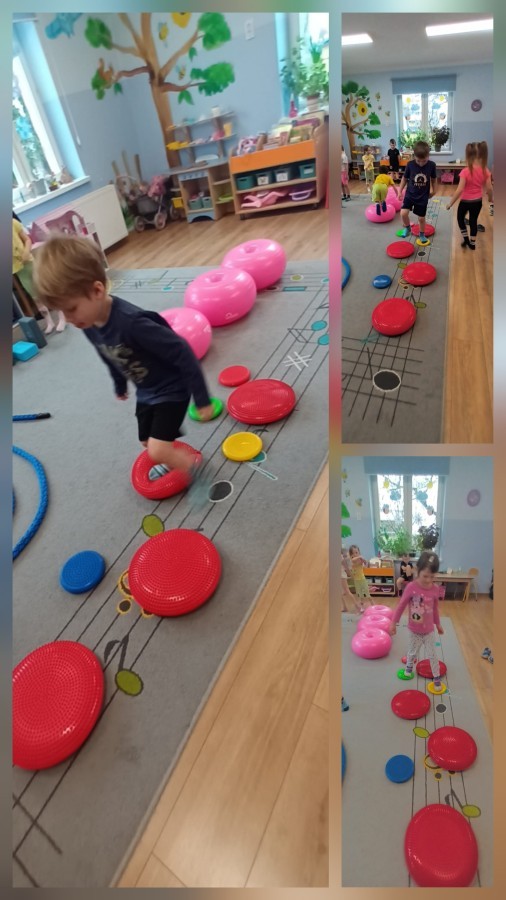 W piątek nasze przedszkole zamieniło się w jeden duży tor przeszkód. Przedszkolaki chodziły po wszystkich salach, gdzie wykonywały rożne ćwiczenia. Pokonywanie toru przeszkód rozwija u dzieci sprawność motoryczną, umiejętności równoważne oraz koordynację ruchową. Zabawy z wykorzystaniem różnorodnych pomocy, np.: beczki sensorycznej, drabinki koordynacyjnej, tuneli czy ścieżki sensorycznej wyzwalają u dzieci aktywność i motywację do pokonywania własnych ograniczeń. To był bardzo aktywny dzień.