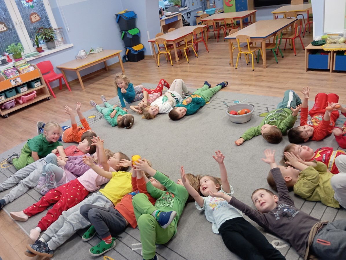 Nie zabrakło oczywiście zabaw ruchowych, zagadek, które wprowadziły dużo śmiechu i energii.