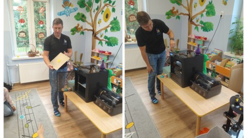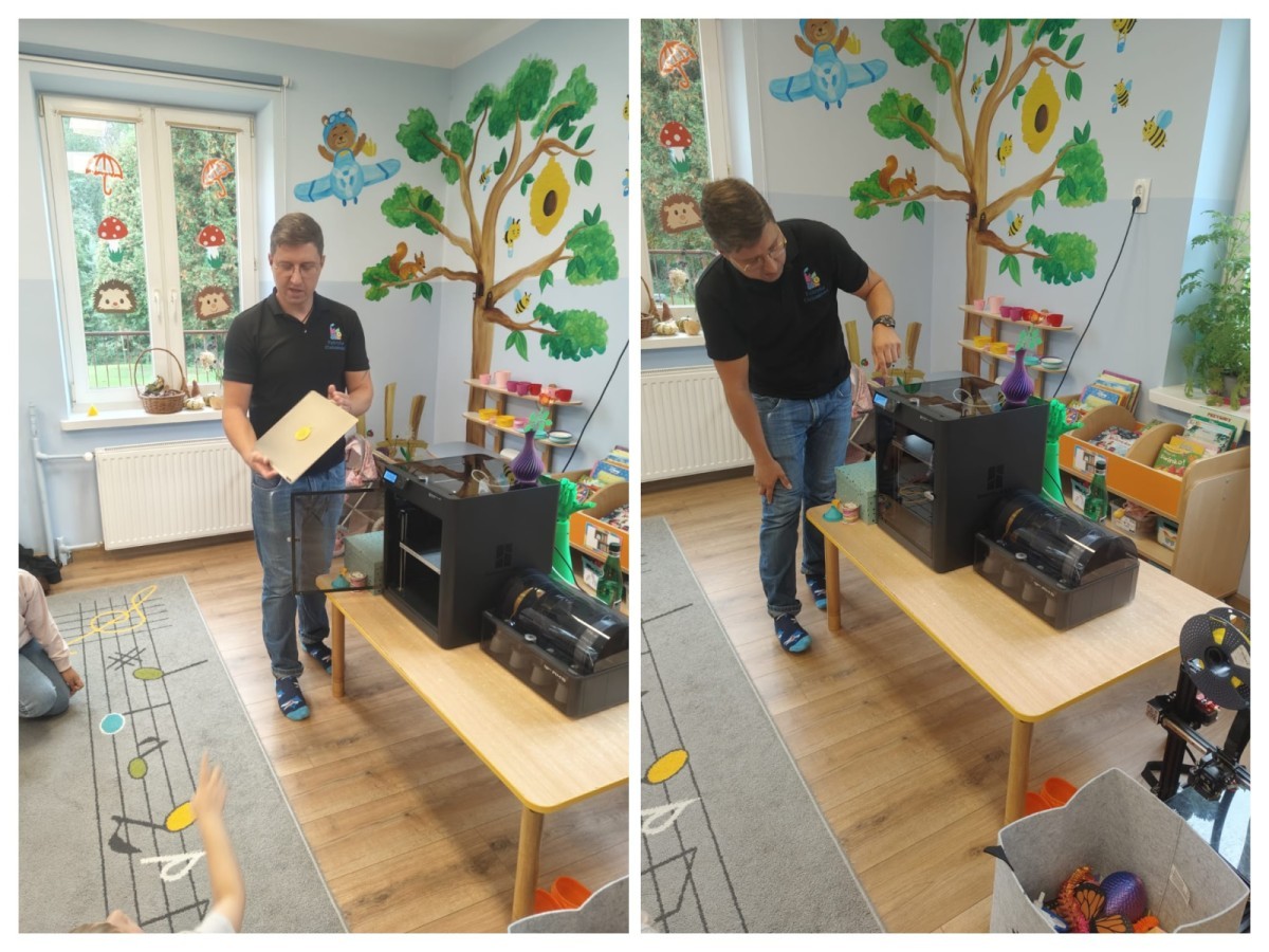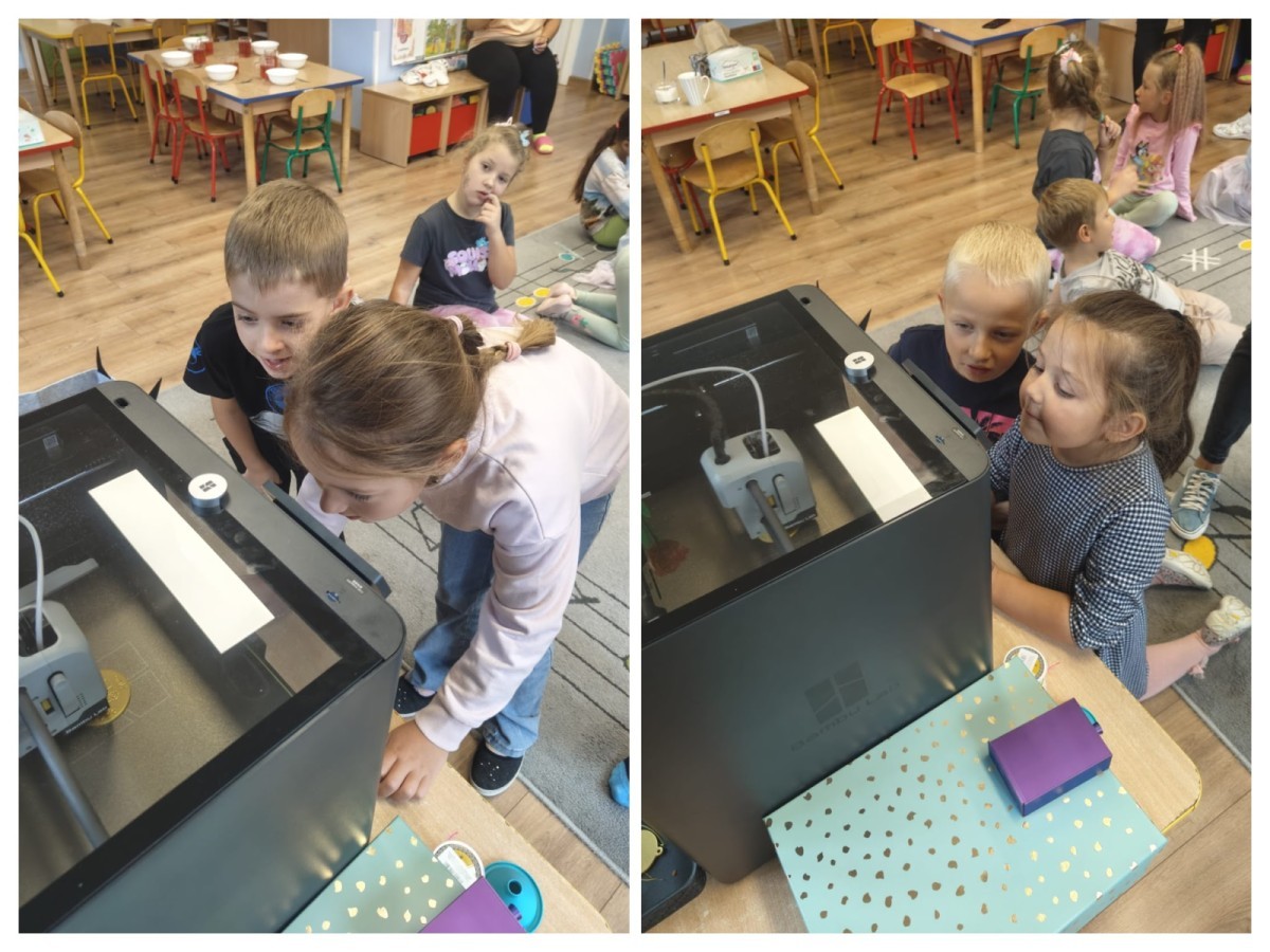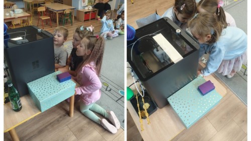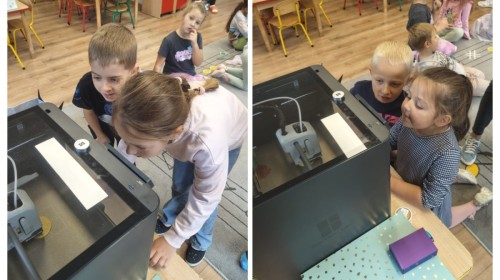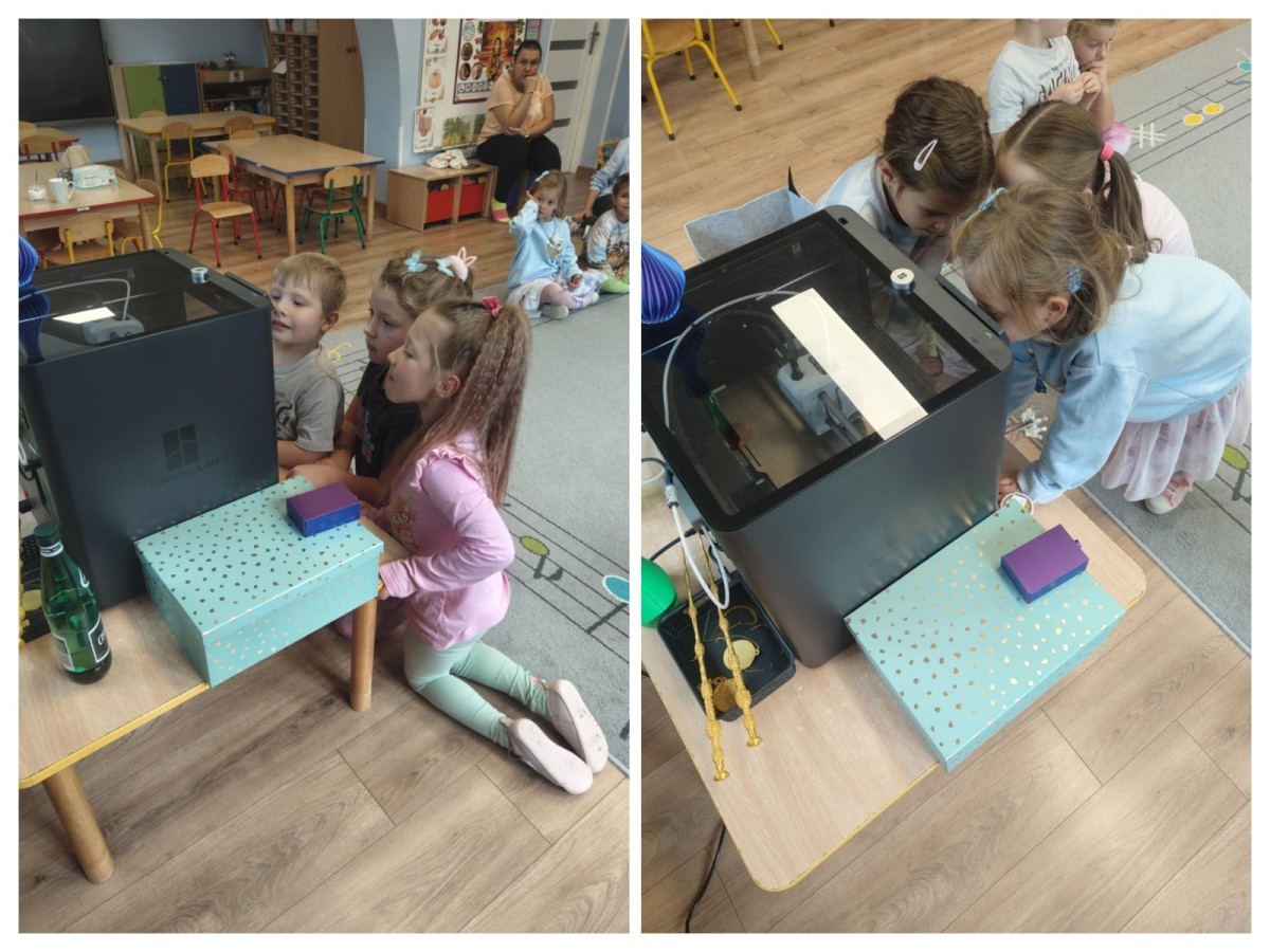 Tego dnia przedszkolaki poznały na żywo możliwości drukarki 3D. Każdy z bliska mógł obejrzeć drukarki jak również zobaczyć jak one pracują. Podczas zajęć dzieci oglądały rzeczy wykonane przez drukarki, które mogą być używane w codziennym życiu. Były Jajka, zwierzątka, smoki, buty jak również model ręki z ruchomymi palcami. Każdy przedszkolak na koniec otrzymał medal wykonany przez drukarkę 3D.