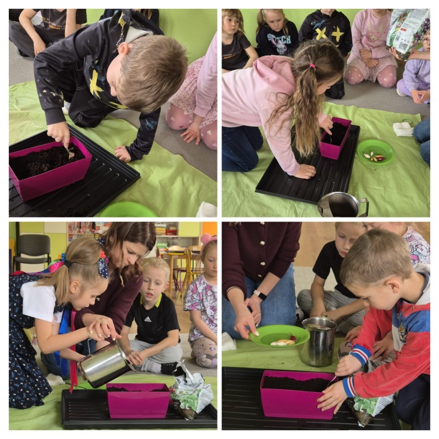 W oczekiwaniu na pojawienie się zieleni za oknem przedszkolaki przystąpiły do zakładania wiosennych hodowli. Najpierw dowiedziały się, jakich warunków rośliny potrzebują do tego, by rosnąć. Następnie założyły hodowlę fasoli, zasadziły cebulę oraz zasiały owies. Każdego dnia będą obserwować i podlewać swoje hodowle oraz czekać na rezultaty przeprowadzonych zabaw badawczych. Samodzielne sadzenie roślinek jest bardzo cennym doświadczeniem dla przedszkolaków. Uczą się nie tylko etapów sadzenia, ale także kształtują poczucie odpowiedzialności oraz mają szansę na obserwację zmian, jakie zachodzą w ich roślinkach.