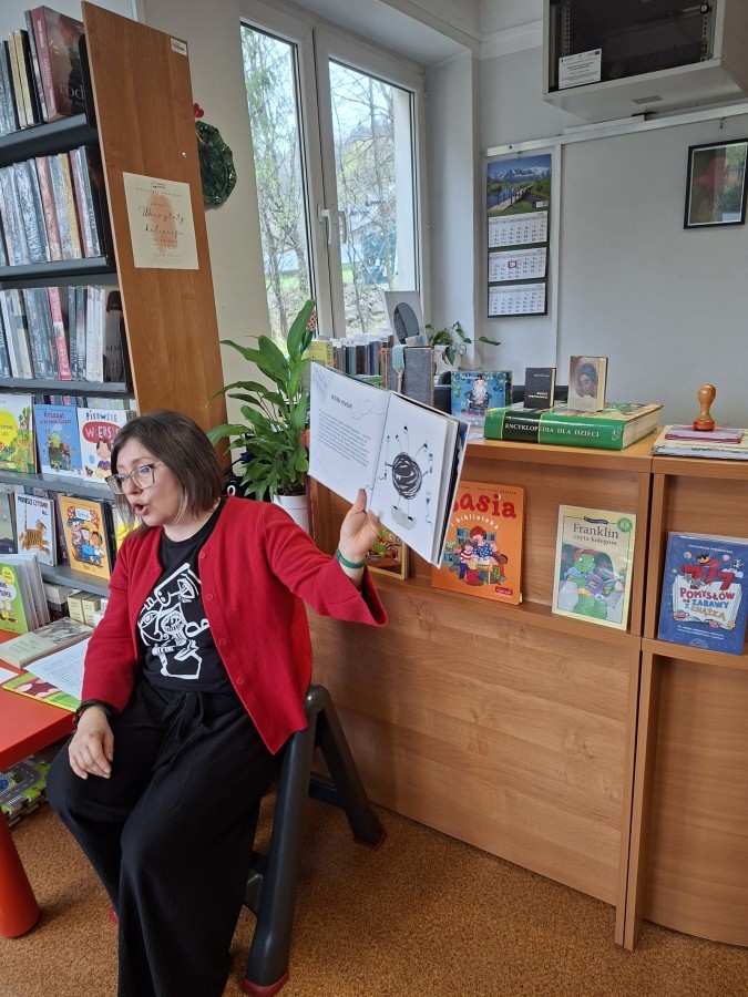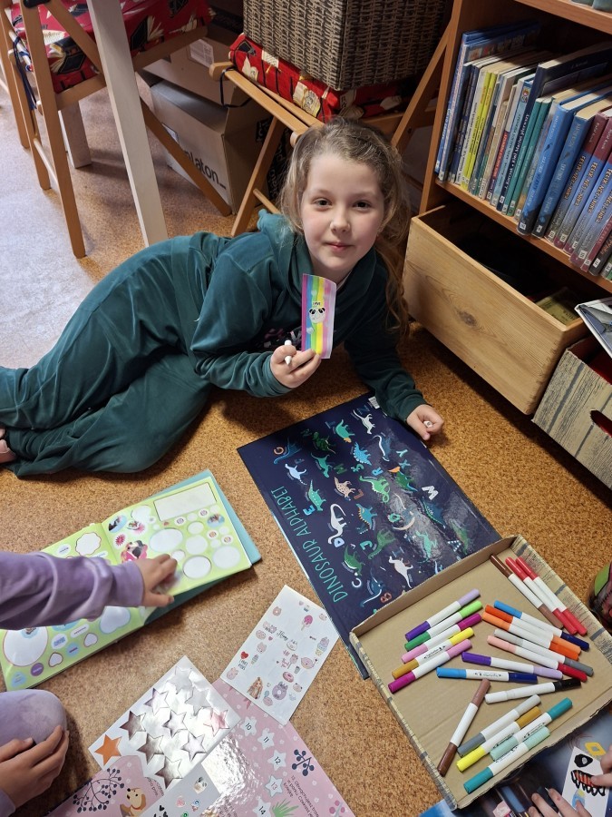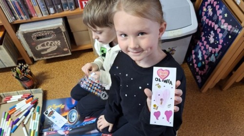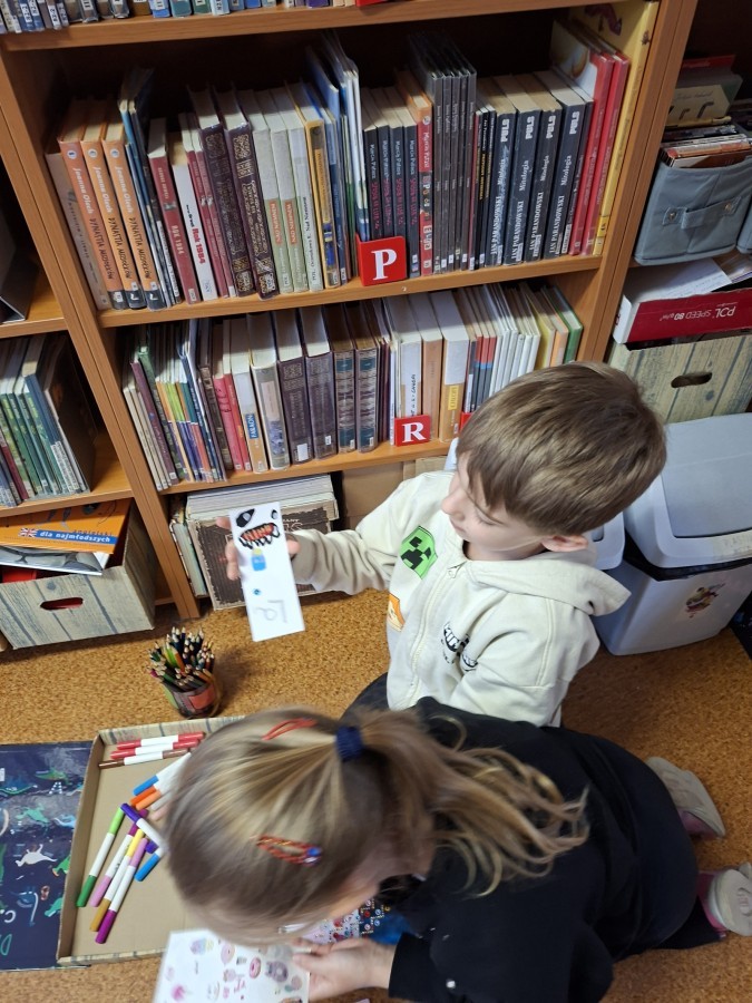 Podsumowaniem tematu o książkach była wizyta w bibliotece, gdzie Pani Brygida przygotowała dzieciom ciekawostki oraz odpowiedziała na interesujące pytania. Przedszkolaki mogły również wykonać własne zakładki.