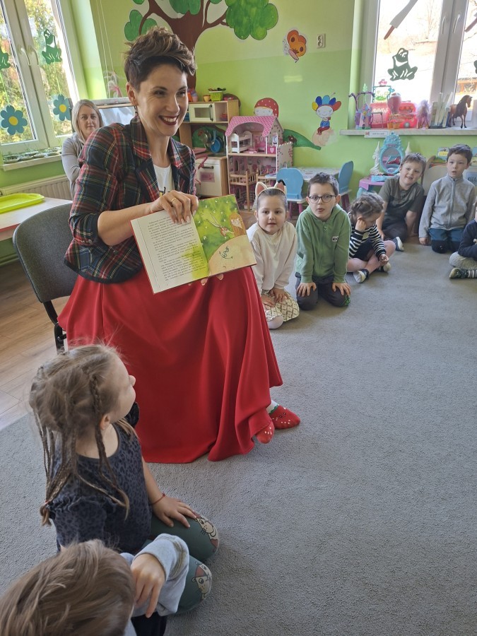 Wszystkie dzieci wiedzą, jak wielką moc mają książki. Dlatego z ogromną radością zaprosiliśmy rodziców do wspólnego czytania bajek w naszej grupie. W tym tygodniu mieliśmy przyjemność gościć wyjątkowych lektorów: mamę Agnieszki, mamę Dawida oraz mamę Tadka. Przedszkolaki wysłuchały "Ciekawe co będzie jutro?" R. Piątkowskiej, "Brzydkie kaczątko" H.Ch. Andersena oraz "Basia i nocowanka" Z. Staneckiej. Takie spotkania to nie tylko świetna okazja do rozwijania wyobraźni i słownictwa, ale także do budowania więzi i zachęcania do częstszego sięgania po książki. Na zakończenie czytania dzieci dostały miłe niespodzianki, za które z całego serca dziękujemy.
