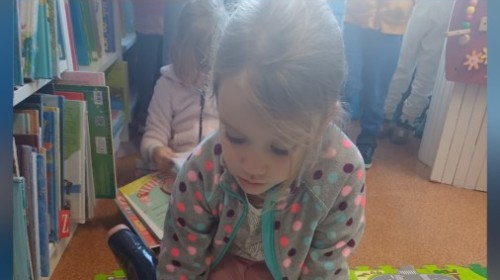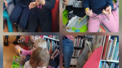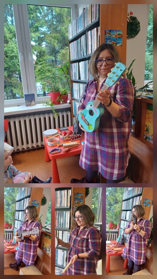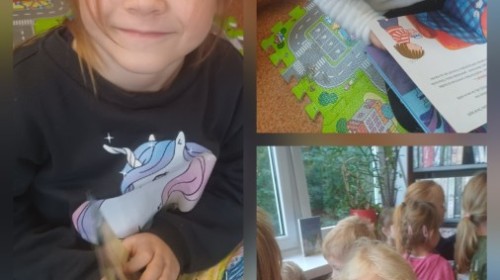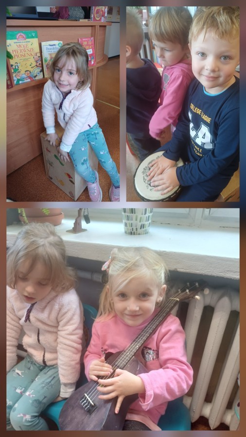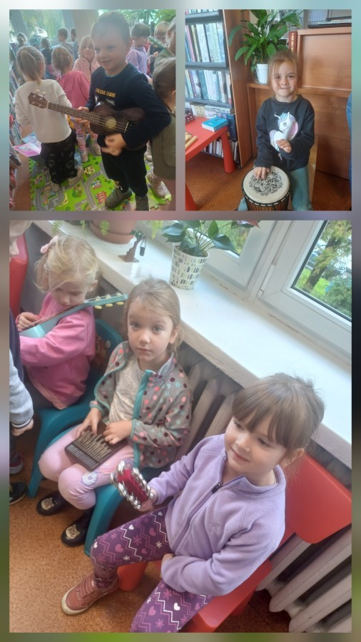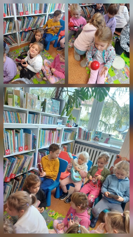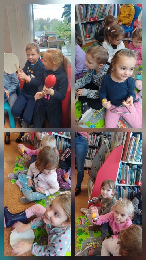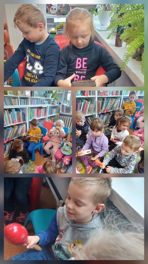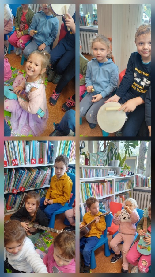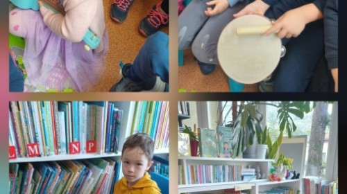 Podczas wyjścia do biblioteki przedszkolaki miały okazję zapoznać sie ze światem muzyki. Rozwiązywały muzyczne zagadki grały na instrumentach. Wysłuchały opowiadania o Franklinie, który chciał się nauczyć grać na instrumencie. A na koniec Mądre Sówki dowolne mogły oglądać książki dostępne w bibliotece.