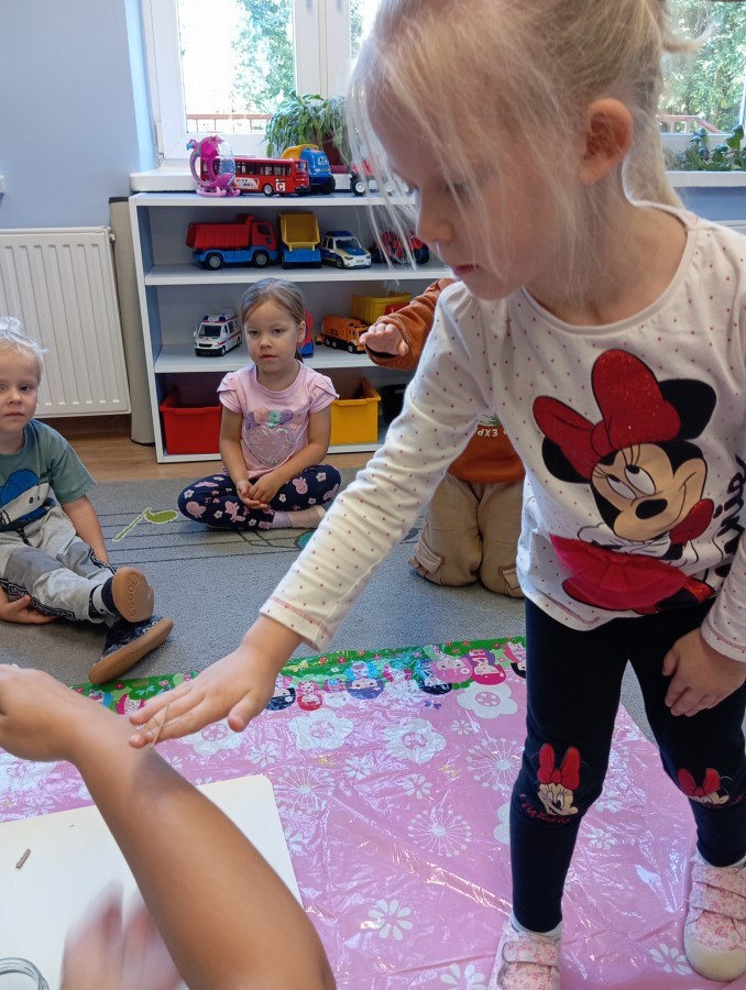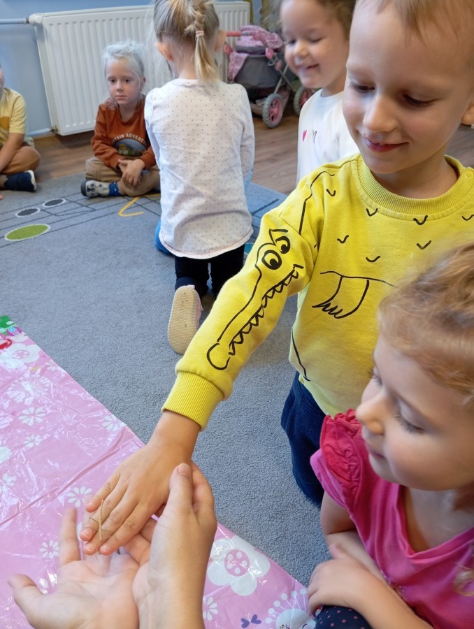 Niektóre dzieci od razu zaprzyjaźniły się z naszymi zwierzątkami grupowymi, inne wolą je na razie uważnie obserwować. Każdy sposób poznawania jest dobry! Dzięki patyczakom uczymy się cierpliwości, odpowiedzialności i uważności na potrzeby innych istot.