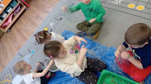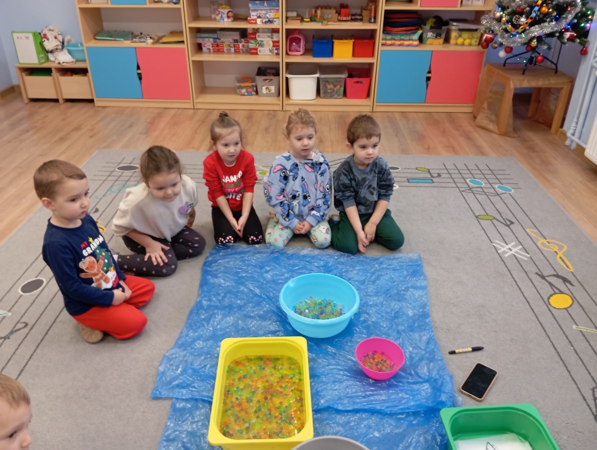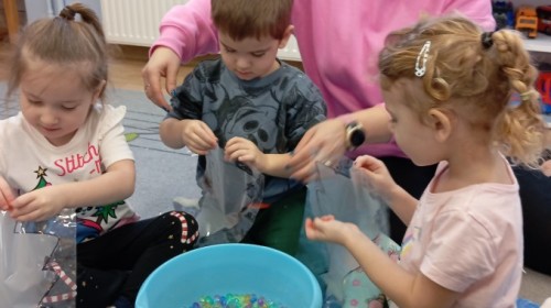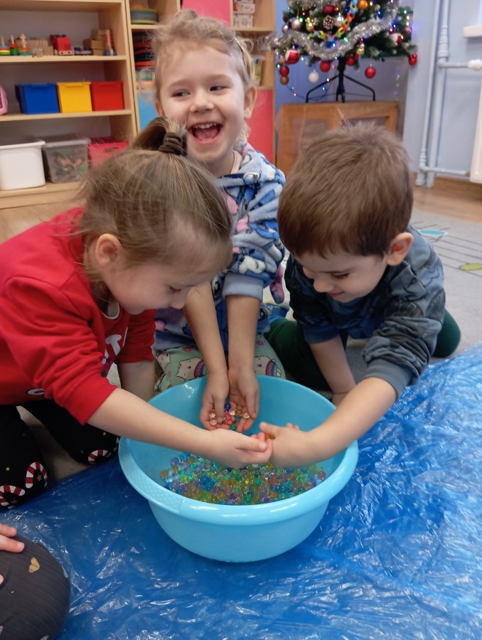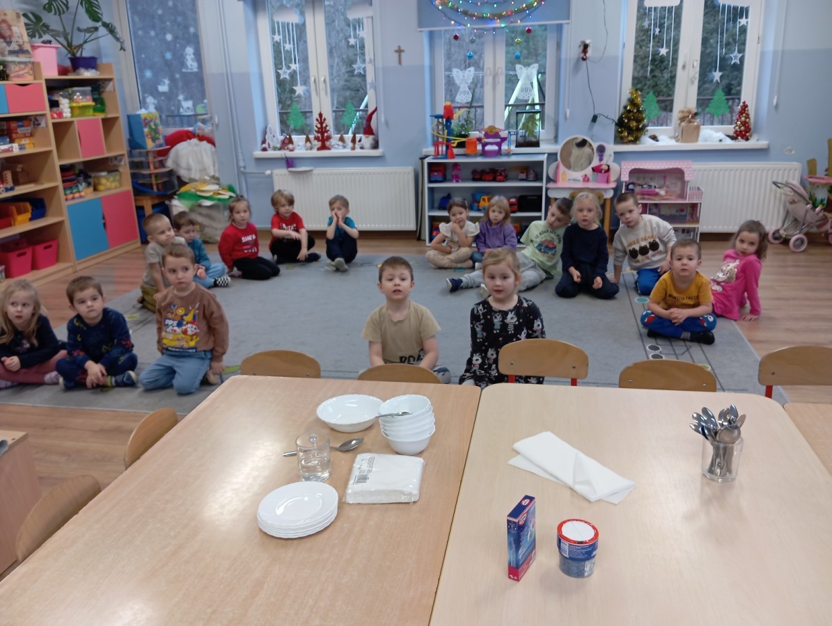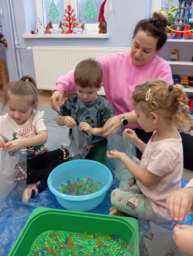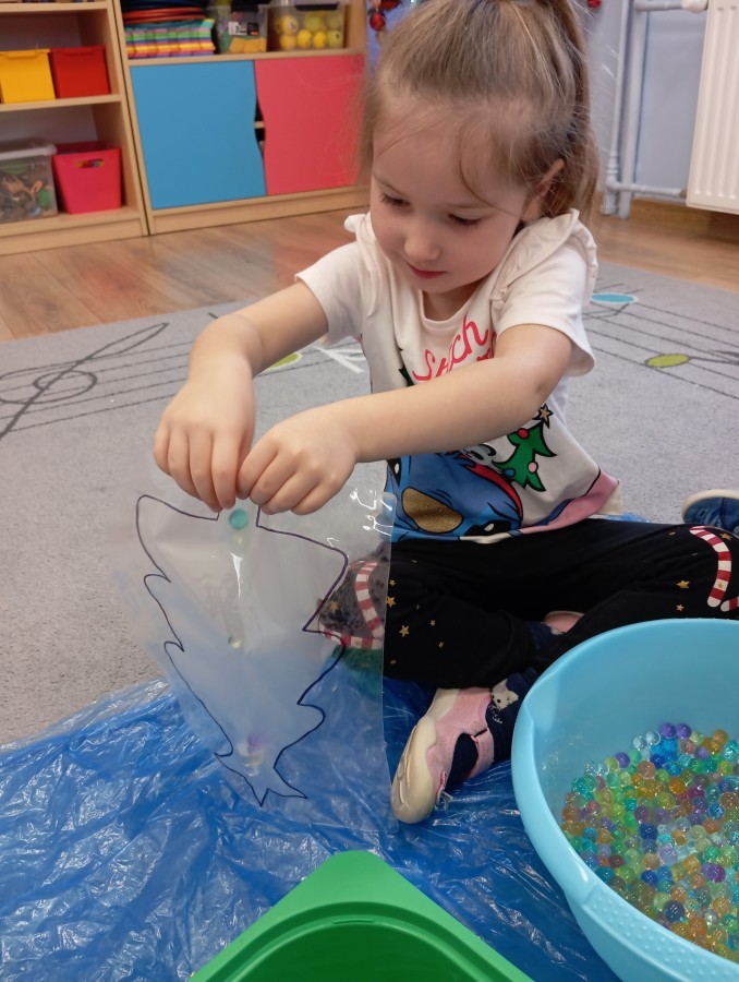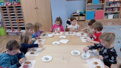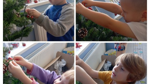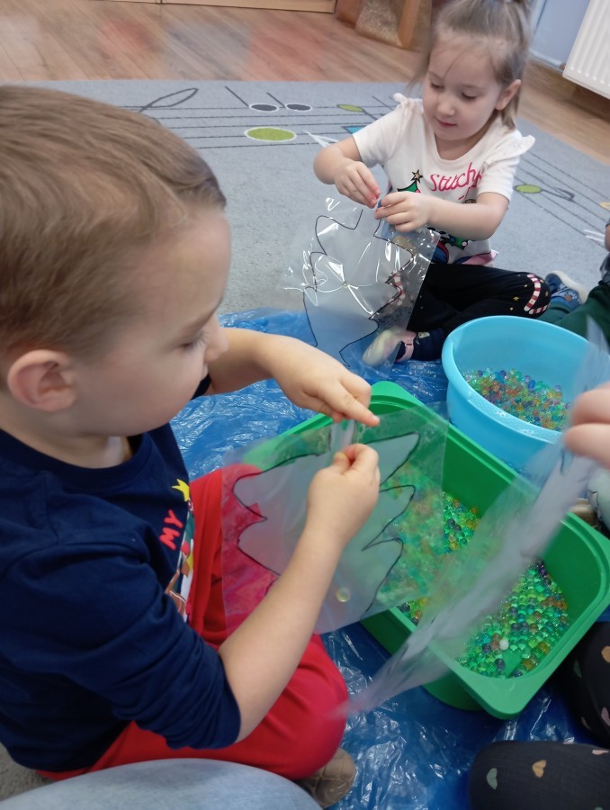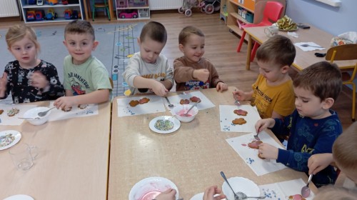 Grupa Pracowite Pszczółki z radością przygotowywała się do świąt! Przedszkolaki dekorowały pierniki, wcześniej samodzielnie przygotowując kolorowy lukier. Wspólnie ubierały choinkę, a zanim pojawiły się na niej ozdoby – dzieci same złożyły drzewko. Nie zabrakło także pracy plastycznej – Pszczółki wykonały tradycyjny łańcuch choinkowy, ćwicząc przy tym cierpliwość i współpracę. Odwiedziła nas też Pani Monika i przeprowadziła ciekawe warsztaty, na których dzieci wykonały sensoryczne choinki.