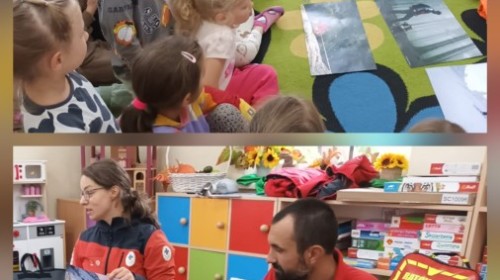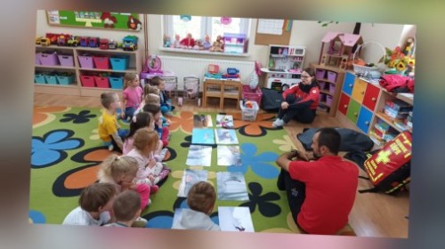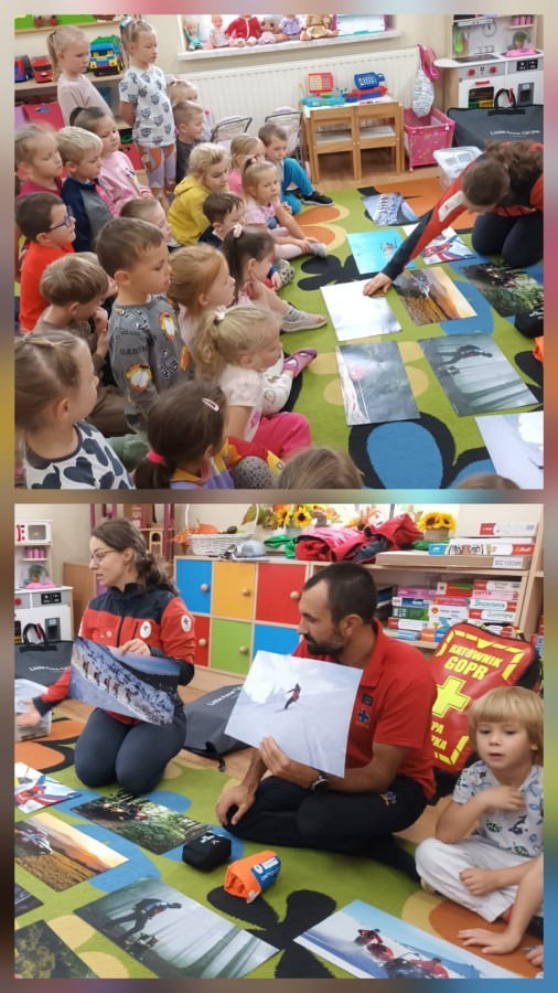 Grupy Mądrych Sówek i Leśnych Skrzatów uczestniczyły w wyjątkowym spotkaniu z ratownikami Górskiego Ochotniczego Pogotowia Ratunkowego (GOPR). Dzieci dowiedziały się, na czym polega praca ratowników, w jak trudnych warunkach działają oraz jak poruszają się w górach. Przedszkolaki z zaciekawieniem oglądały wyposażenie plecaka ratunkowego, a chętni mogli nawet przymierzyć specjalistyczny sprzęt.