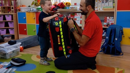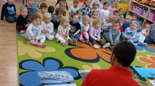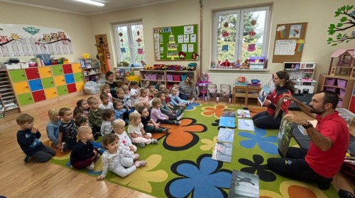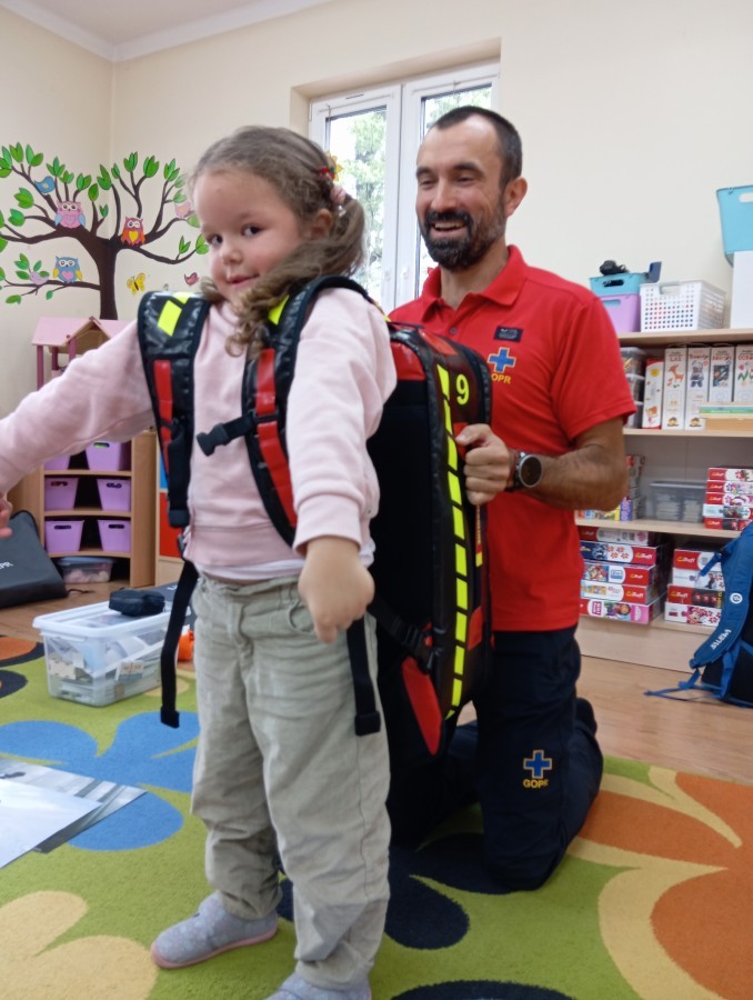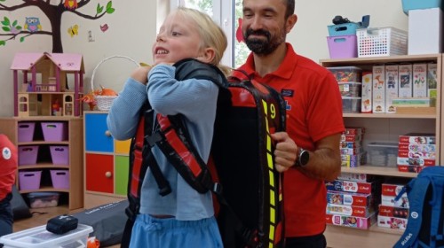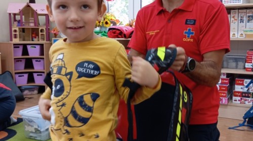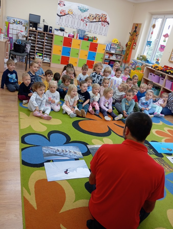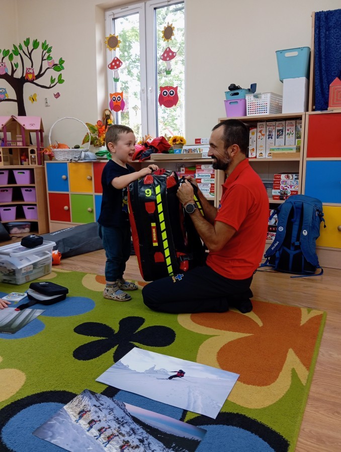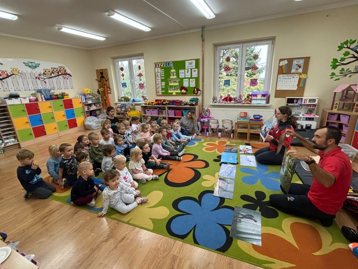 02.10 Grupy Wesołych Misiów i Pracowitych Pszczółek uczestniczyły w wyjątkowym spotkaniu z ratownikami Górskiego Ochotniczego Pogotowia Ratunkowego (GOPR). Dzieci dowiedziały się, na czym polega praca ratowników, w jak trudnych warunkach działają oraz jak poruszają się w górach. Przedszkolaki z zaciekawieniem oglądały wyposażenie plecaka ratunkowego, a chętni mogli nawet przymierzyć specjalistyczny sprzęt.