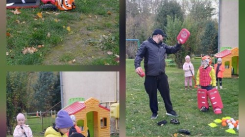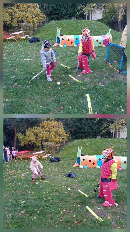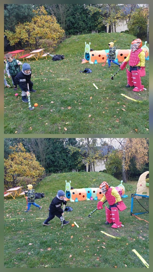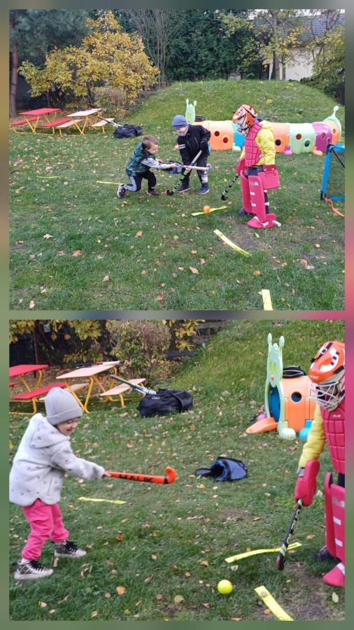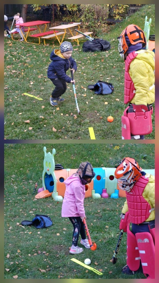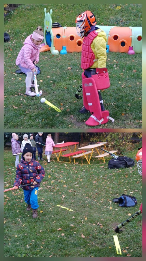 W czwartek odwiedził nas trener Edgar z KS Bielik by wspólnie z dziećmi wykonać trening hokeja na trawie. Przedszkolaki zaczęły od rozgrzewki następnie przeszły do nauki poprawnego uchwytu kija i prowadzenia piłki. Była prezentacja stroju bramkarskiego i strzelanie do bramki. Trening w formie zabawy bardzo sie podobała i zapraszamy trener Edgara do nas na wiosnę.