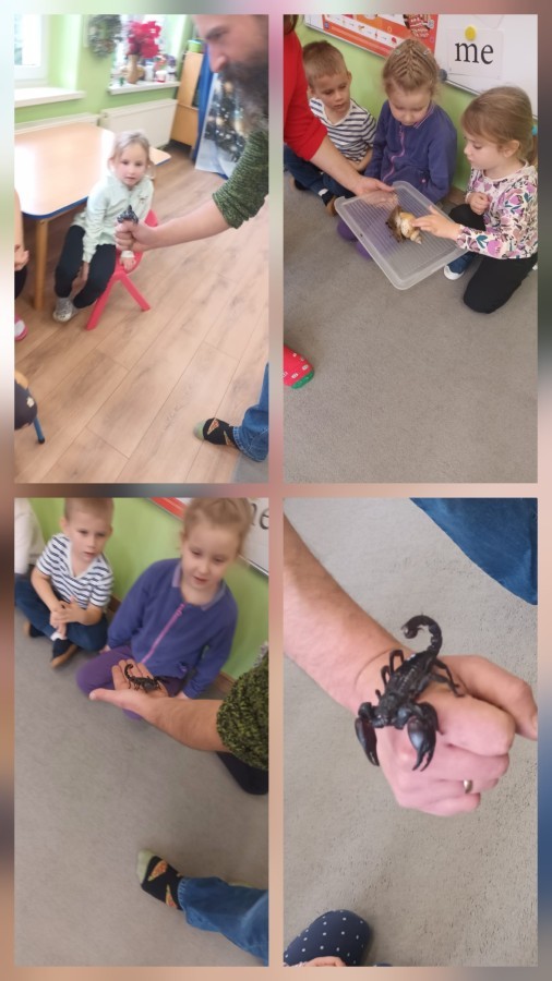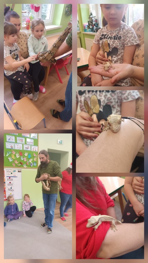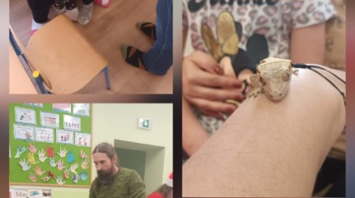 W naszym przedszkolu odbyły się ciekawe i pełne emocji zajęcia przyrodnicze, które poprowadzili pracownicy firmy Aqua Terra. Mądre Sówki miały okazję poznać różne zwierzęta egzotyczne i nie tylko 🐍🕷 Dzieci z wielkim zainteresowaniem słuchały ciekawostek o trybie życia, zwyczajach i potrzebach tych fascynujących zwierząt. Przedszkolaki mogły obejrzeć zwierzęta z bliska, a największa atrakcją była możliwość dotknięcia i pogłaskania ich.
