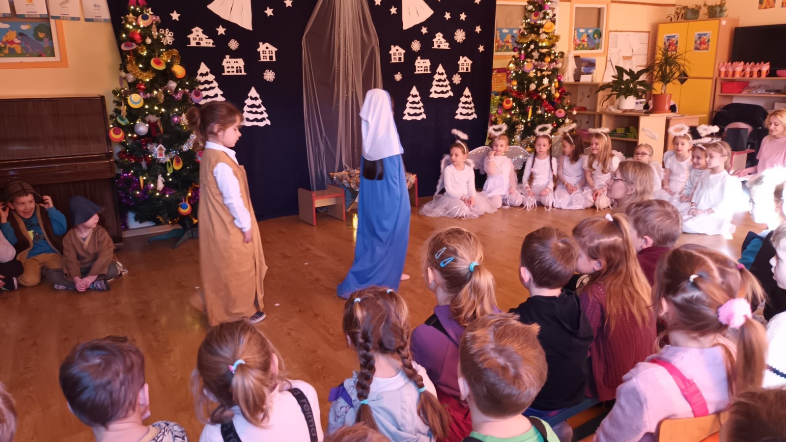 Tego dnia starsze grupy odwiedziły zaprzyjaźnione Przedszkole nr 6. Podczas wizyty dzieci miały okazję obejrzeć przedstawienie przygotowane przez starszą grupę i tematyce świątecznej. Wszystkim bardzo sie podobało serdecznie dziękujemy za zaproszenie.