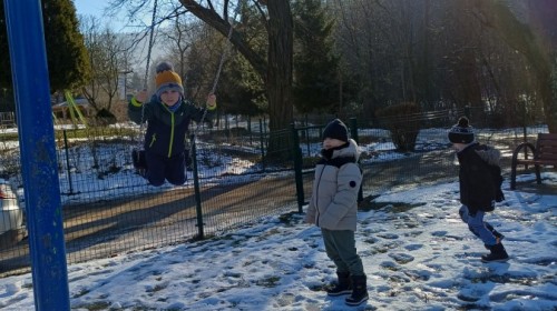 Zimowe zabawy na świeżym powietrzu Mądrych Sówek